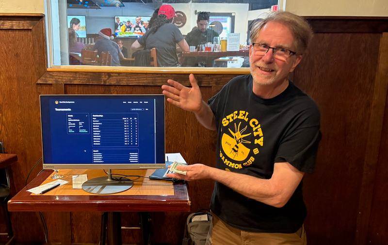 Sunday Update: We had a great time yesterday playing our first-ever Swiss-format tournament. 10 players competed, and here are the final results. Steve Hast won with a stellar 4-0 record, Peter and Steve Grund had 3-1 records, with Peter edging it out in the tie-break.
